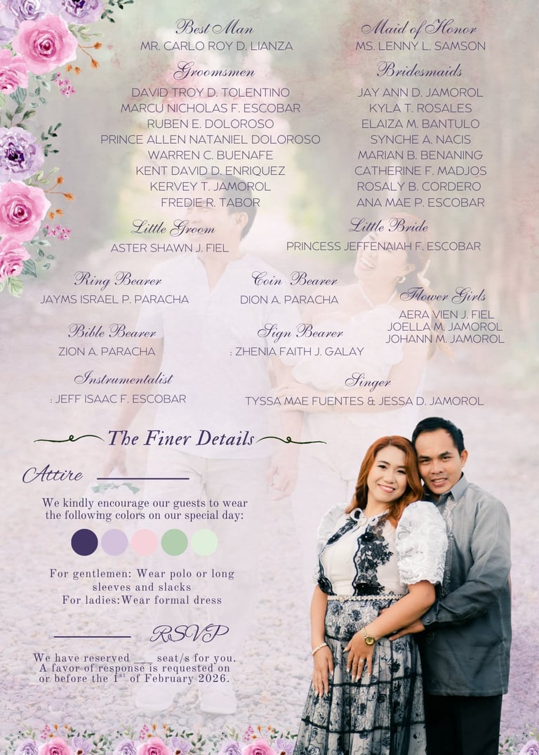 This website is here to share the details of our wedding and keep everyone connected as the day approaches. Please take a moment to explore, and kindly fill out the RSVP so we can celebrate together.